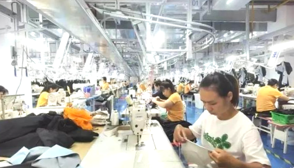 位于广西现代服装产业园二期园区内的广西桂卓体育用品有限公司(以下简称“广西桂卓公司”)生产区空调车间内,700名员工在智能智造车间生产线上有条不紊地制作冬季的棉衣、羽绒服等产品。