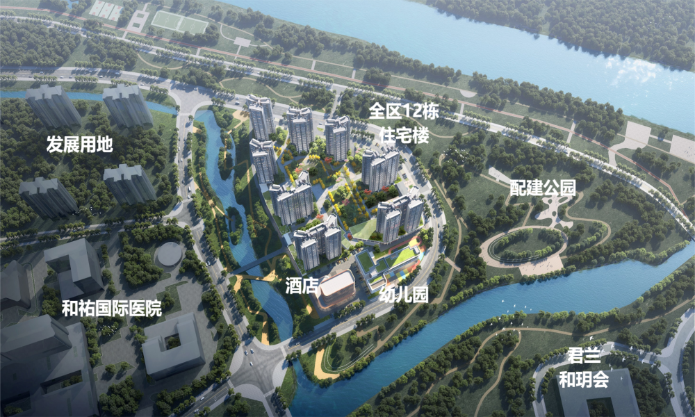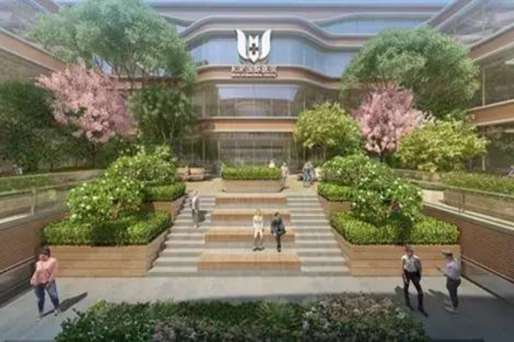 医院选址粤港澳大湾区核心地段,位于佛山三龙湾高端创新集聚区,按照国内三级甲等综合医院和国际质量认证体系最高标准进行设计,规划用地 386 亩、总建筑面积 58 万平方米,规划 1,500 张床位,同期建设质子重离子中心及人才房,并预留医学科研、转化医学、学术交流培训等功能区域。
