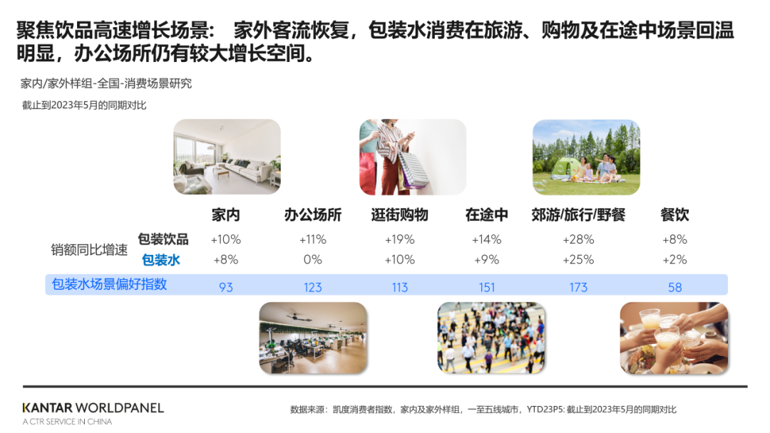 根据凯度消费者指数截至2023年5月的前52周同期对比数据显示,在即时零售渠道购买包装水的销额增长中,80%都是对品类额外增量的贡献。