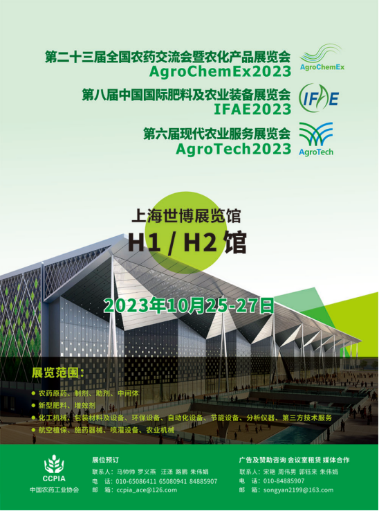 以上企业将携带众多新产品、新技术,为广大生产企业提供更安全、更便利、自动化程度更高的新产品,助力农药及中间体生产企业进行工艺改造、清洁生产、装备升级等智能化建设。更多关于农药中间体、原药生产设备、制剂生产设备、检测设备、包装材料及设备等信息,敬请关注由中国农药工业协会主办的“第二十三届全国农药交流会暨2023国际农化产品展览会”。