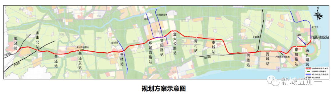 沪杭高铁、规划嘉青松金线、金山铁路、拟建15号线南延伸、轨交5号线、规划奉贤线、规划曹奉线、规划沪乍杭铁路、浦东铁路和轨交16号线换乘衔接。