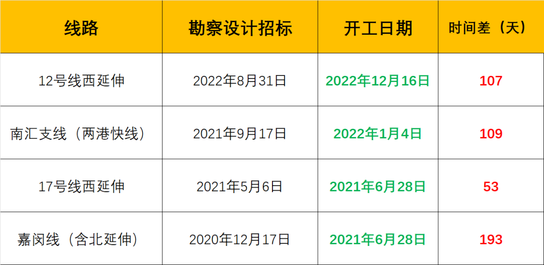关于开工日期,参考上海近几年的地铁/市域铁的建设节奏,从轨交工程勘察设计招标开启,到正式开工,平均间隔时间在4个月左右。
