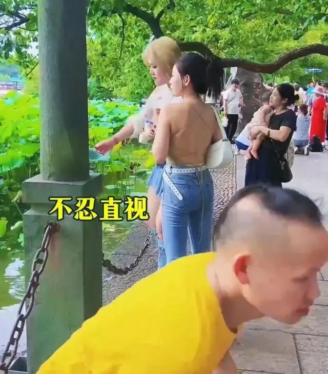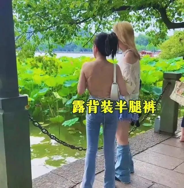 两女子穿清凉服装游西湖,露背装引热议,女子争辩:我有穿衣自由,我虽然穿着清凉,可你不能对我有其他想法,多看一眼就是别有用心。