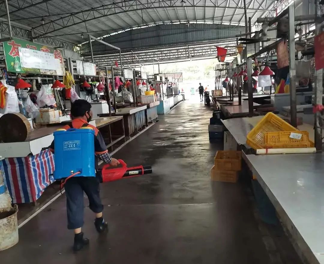 在开展消杀工作的同时,提醒市场开办方要切实提升预防意识,适当升级疫情防控措施,从严加强进出人员管理,提醒从业人员做好个人防护等,加大对畜禽肉类、水产品、果蔬等食用农产品进货查验要求落实情况的监督检查,严格落实活禽经营零存栏和休市制度。
