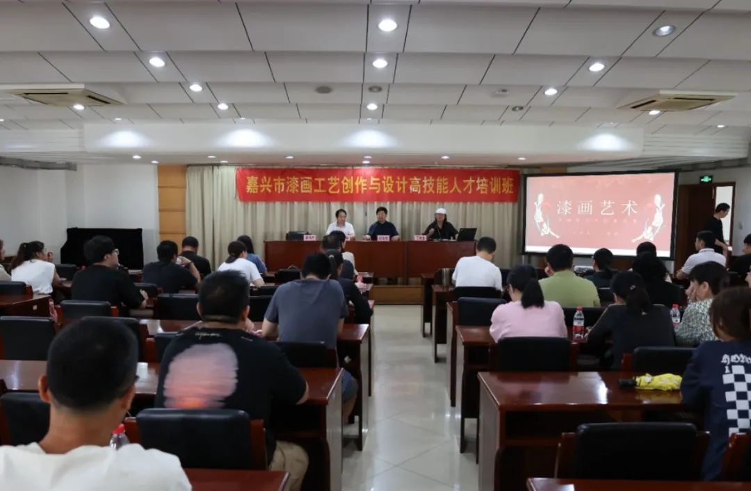 根据嘉兴市人力资源和社会保障局《关于印发2023年度全市高技能人才研修培训班计划的通知》精神,嘉兴工艺美术行业协会申报立项的“嘉兴市漆画工艺创作与设计高技能人才培训班”于2023年8月11日正式开班上课。