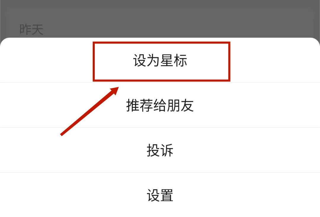 1 点击右上角的··· 2 点击“设为星标”