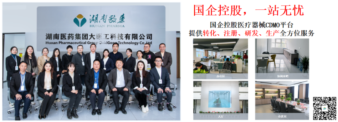 湖南大医工科技有限公司是省内最大的CDMO平台之一,成立以来一直为客户提供医疗器械产品专业化的委托研发、注册、转化、委托生产和销售全流程服务,其团队的专业能力及贴心的服务能力取得了良好的社会口碑与认可。