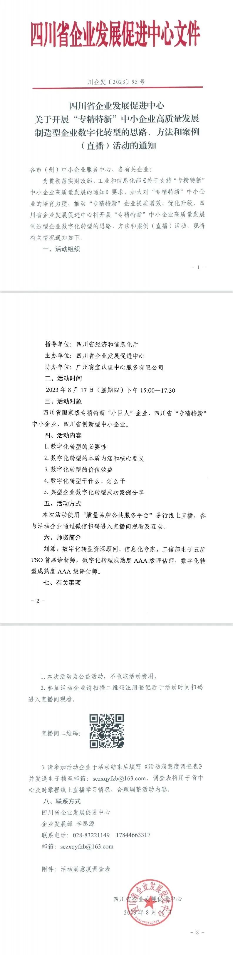 四川省企业发展促进中心关于开展“专精特新”中小企业高质量发展制造型企业数字化转型的思路、方法和案例(直播)活动的通知