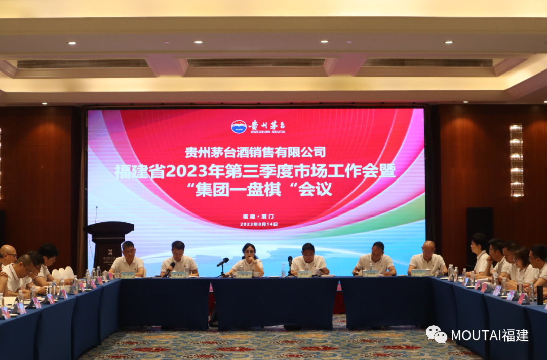 2023年8月14日,贵州茅台福建省经销商联谊会2023年第三季度市场工作会暨“集团一盘棋”会议在福建厦门悦华酒店召开。贵州茅台酒销售有限公司福建省区、集团公司生态农业、保健酒业、葡萄酒公司福建省区负责人,贵州茅台福建省经销商联谊会传承人工作部,市场部、宣传部及福建经销单位主要负责人、各门店店长参加此次会议。