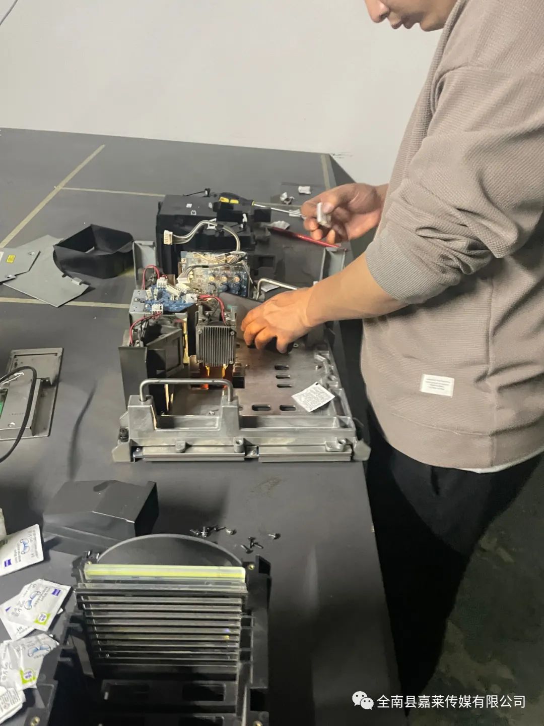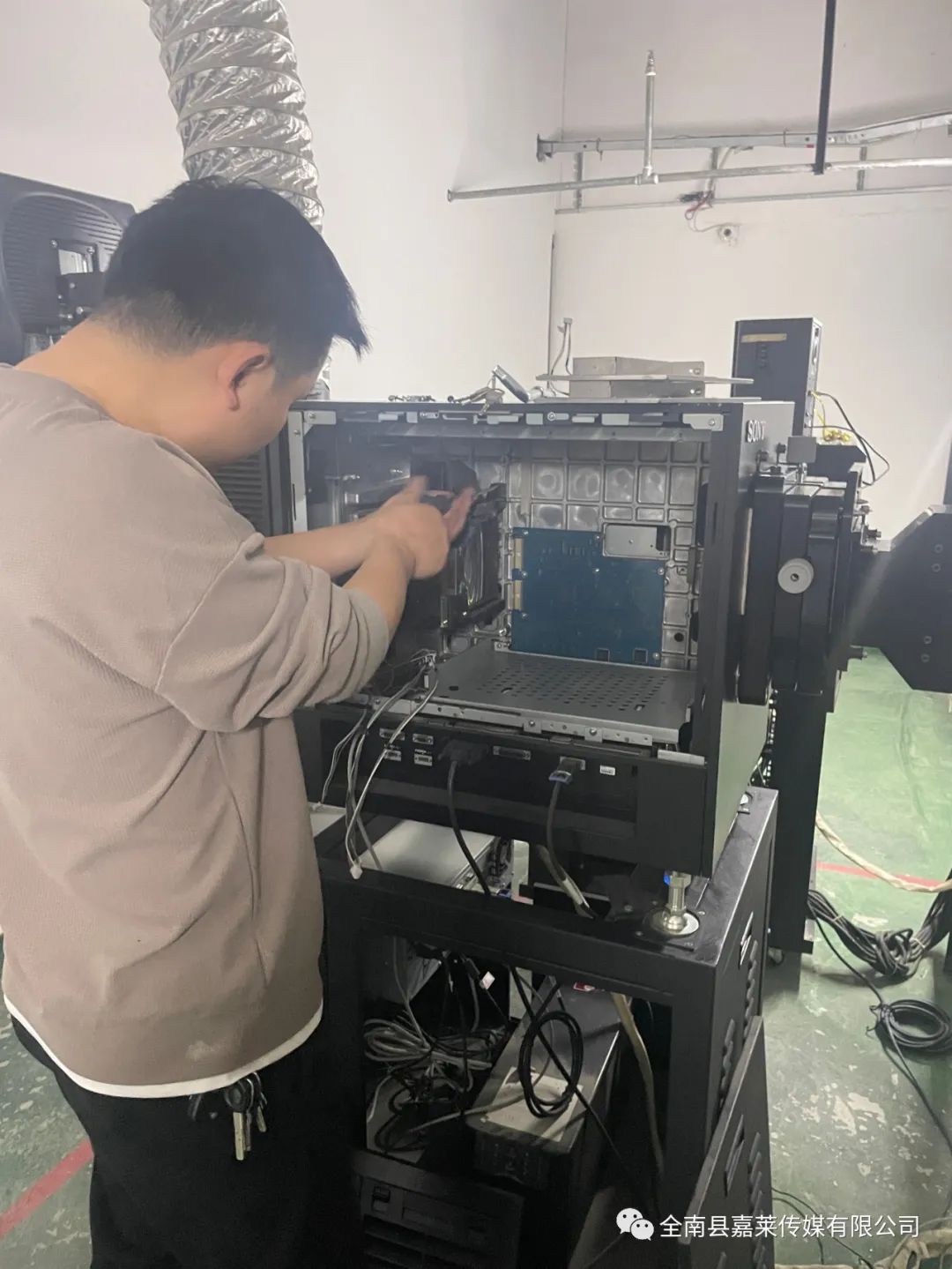 近日,影院在由专业工程师的带领下对所有放映机设备进行了维护保养及升级,更换,大家认真的对每一台机器进行擦拭保养,发现问题及时的进行整改,
