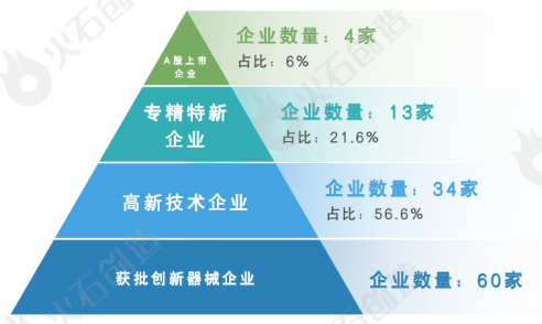 81款创新医疗器械上市批件分别由60家企业获得,其中高新技术企业34家,专精特新企业13家,A股主板上市企业4家。优质企业培育潜力大。