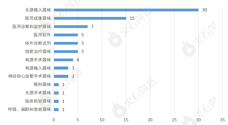 从创新医疗器械类别分布看,无源植入器械最多,如静脉支架系统、锆铌合金股骨头等,其次为医用成像器械和医用诊察和监护器械。
