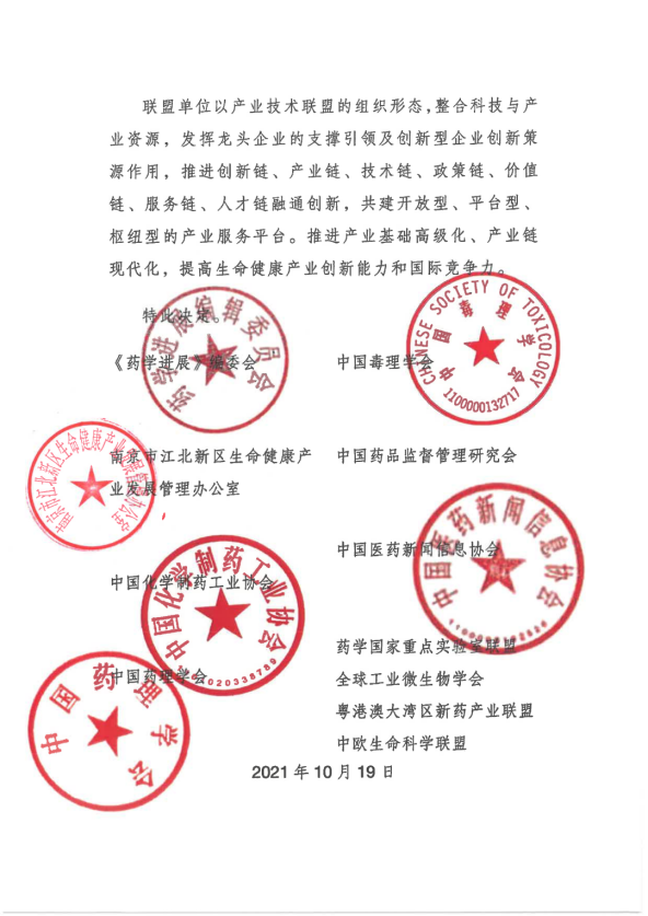 “中国生物医药产业链创新与转化联盟”是由《药学进展》编委会协同中国化学制药工业协会、中国药理学会、中国毒理学会、中国药品监督管理研究会等权威国家级行业学协会、药学国家重点实验室联盟等国家战略科技力量,中欧生命科学联盟等人才组织等共同发起成立,南京生物医药产业链专班指导的生物医药产业生态赋能平台;联盟集聚“政产学研医金介”全产业链顶级专家,30个聚焦生物医药创新领域的分支机构,形成了由政府园区、创新型企业、高校院所、临床机构、金融资本、监管部门、行业媒体组成的创新生态圈。