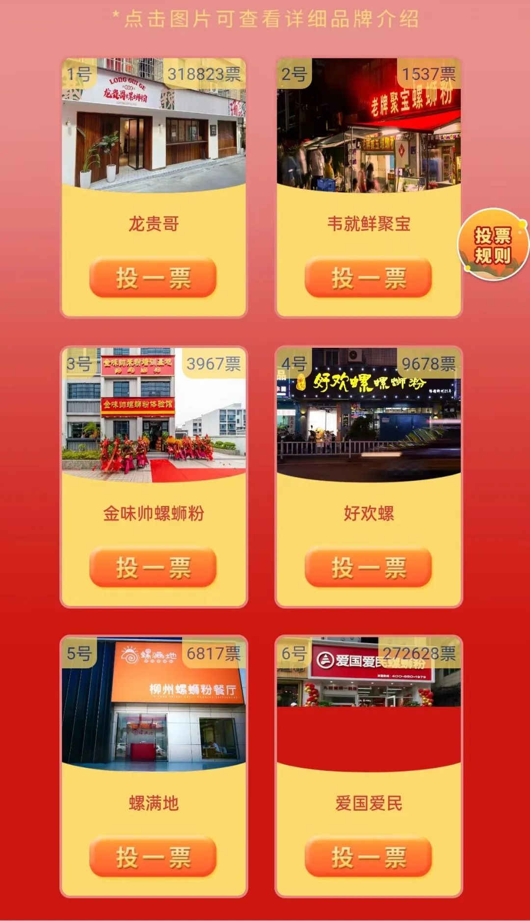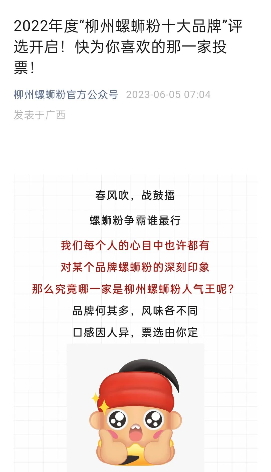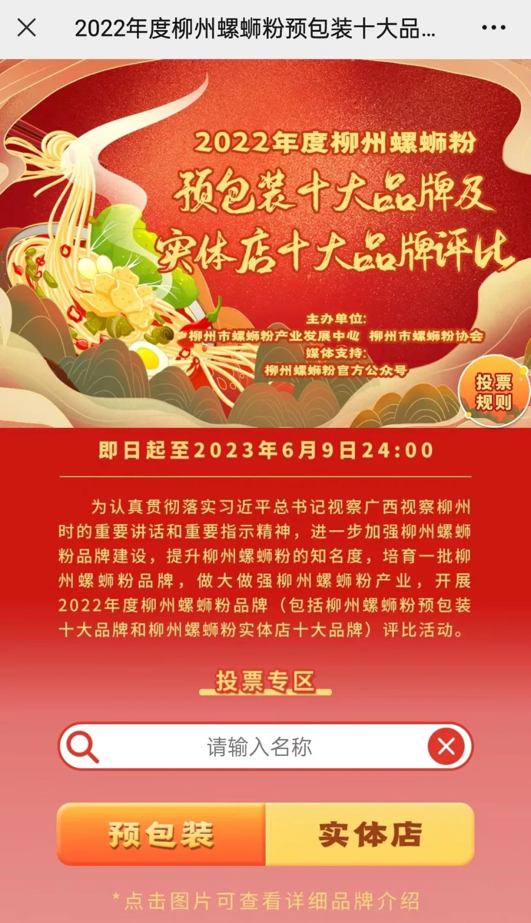 柳州螺蛳粉官方公众号技术赋能本次活动的网络投票部分,开发、设计网络投票网页,并提供宣传支持。