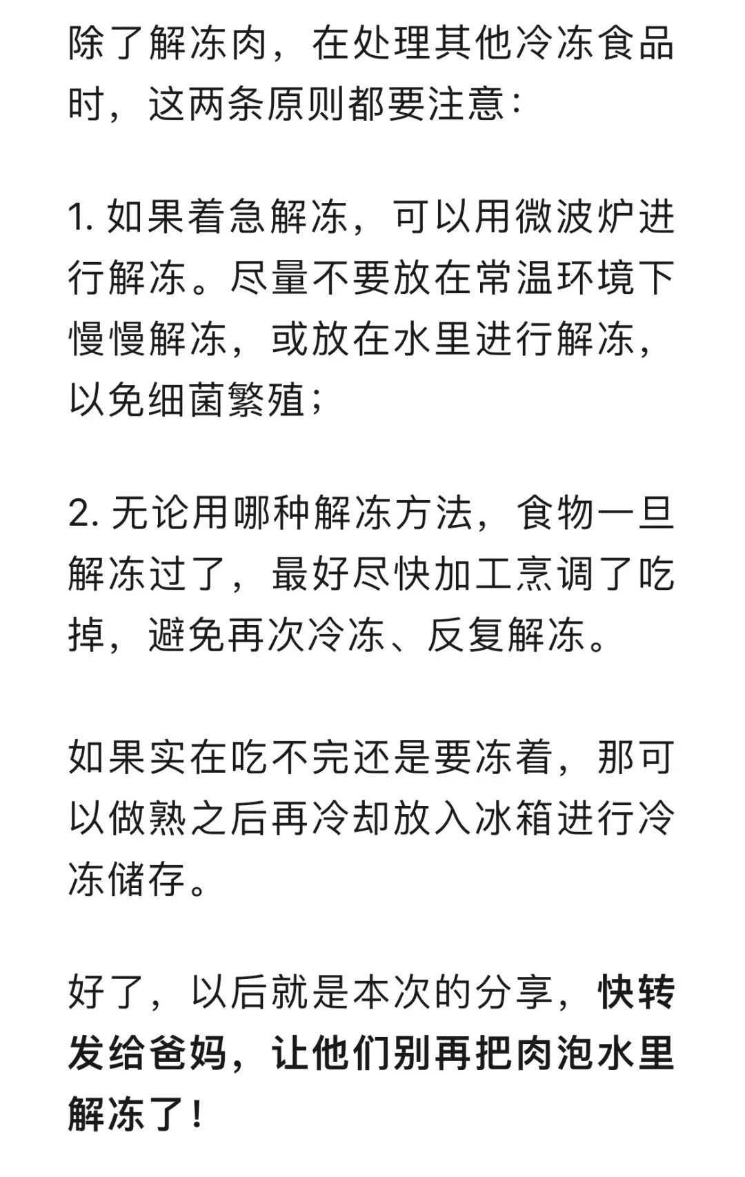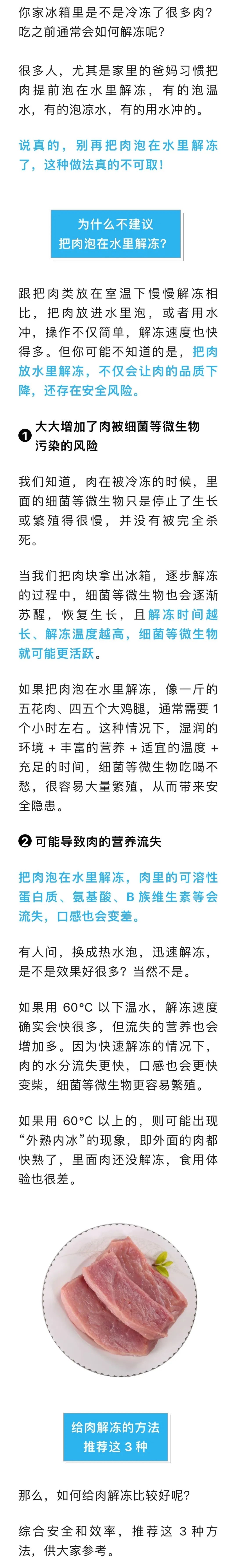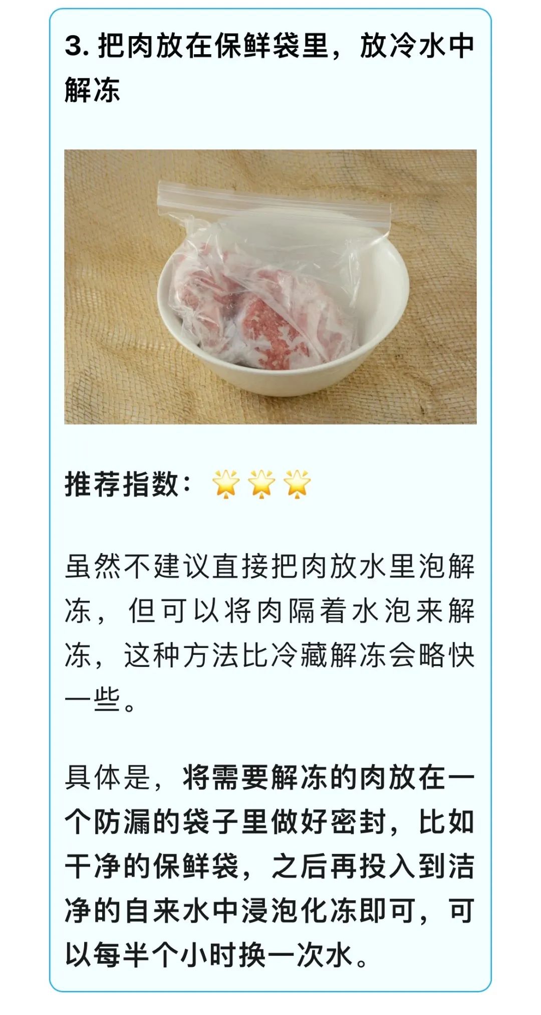 【食品安全】不要再把肉泡水里解冻了,推荐这3种方法!