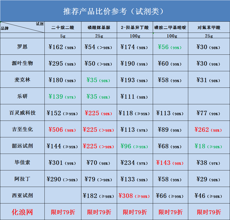 化浪比价单|十大品牌试剂产品今日参考大比价