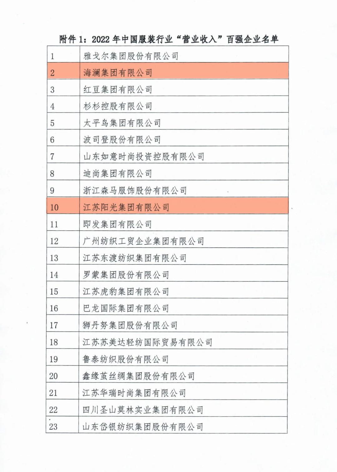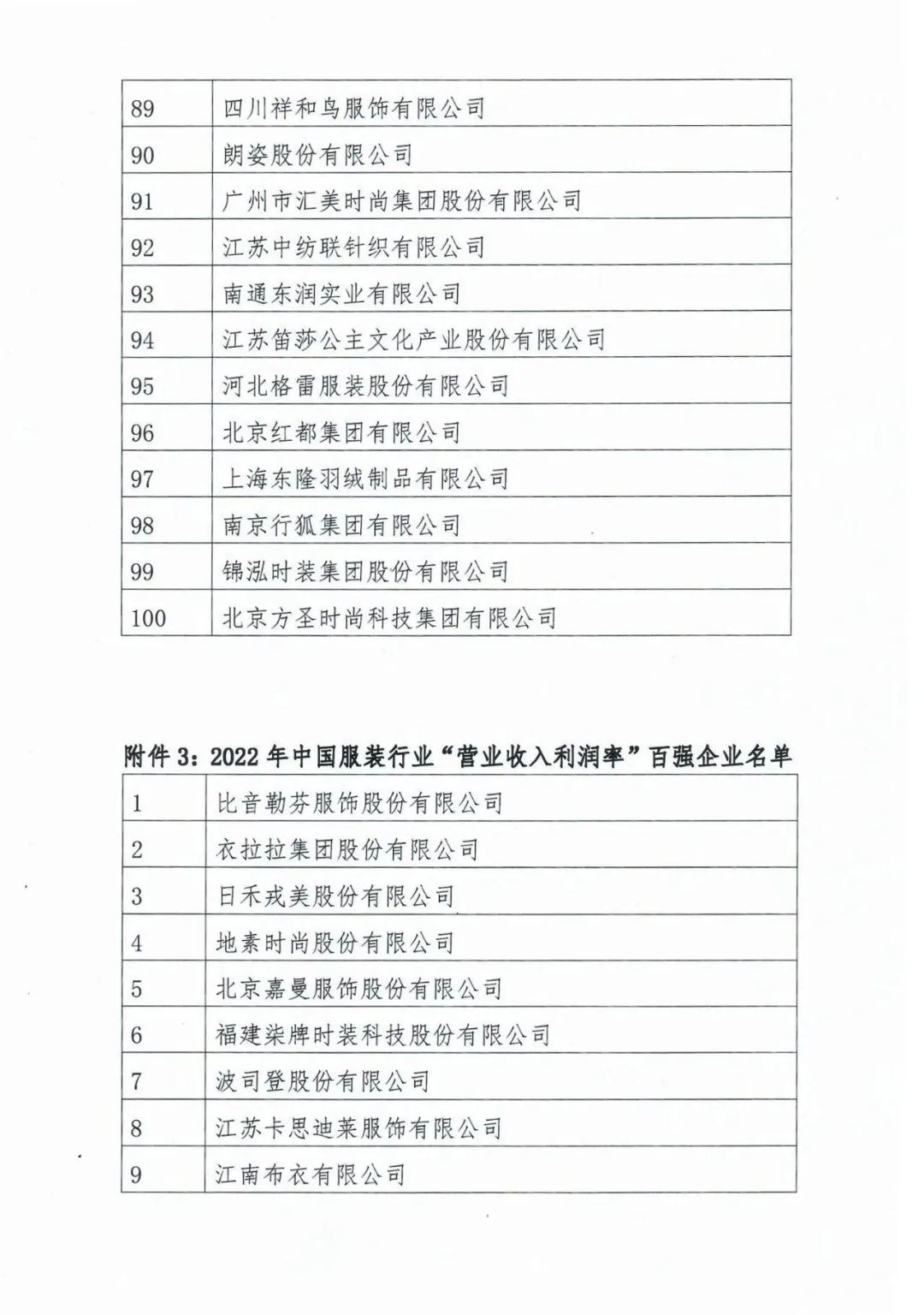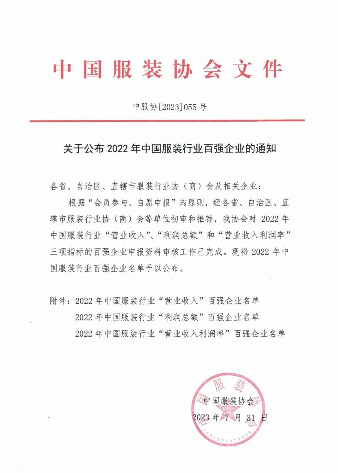 根据“会员参与、自愿申报”的原则,经各地方服装协(商)会初审推荐,中国服装协会分别对申报企业的“营业收入”、“利润总额”和“营业收入利润率”三项指标进行核实排序。最终,全国共有130家企业荣登2022年度的中国服装企业“百强”榜。