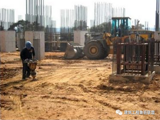 车库顶部回填土第一层回填采用人工回填,人工平整,机械夯实,场地部位及第二层土方回填,采用装载机配合推土机运送到土方回填部位,装载机平整。