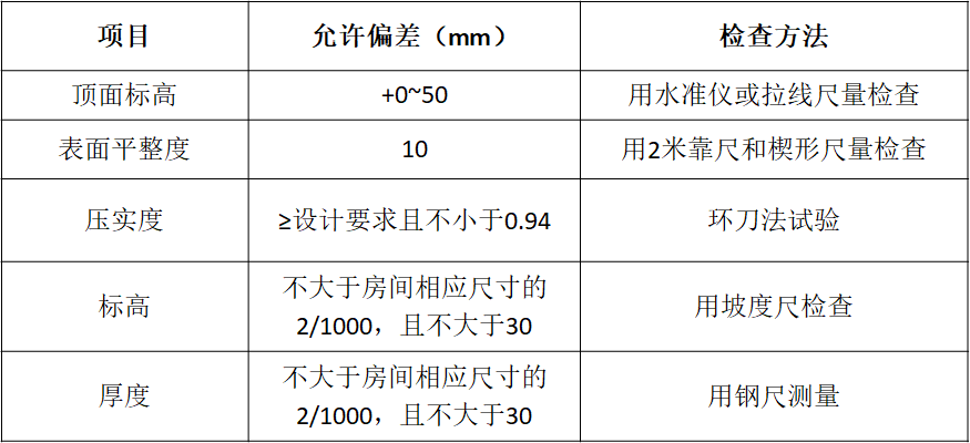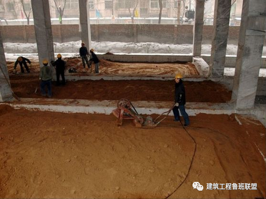 备注:冬期回填土每层铺土厚度应比常温施工时减少20%~50%;其中冻土块体积不得超过填土总体积的15%;其粒径不得大于150㎜。铺填时,冻土块应均匀分布,逐层压实。回填土工作应连续进行,防止基土或已填土层受冻,并及时采取防冻措施。