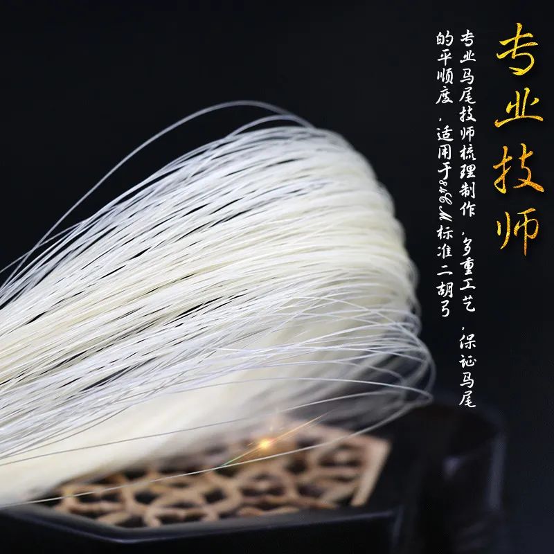 精选自纯正内蒙古白马尾,专业工艺师梳理制作,顺滑直顺,马尾根数大约为300根左右,备用马尾长度为79CM,适用于84CM标准二胡弓,安装方便简单,适合初学者使用,或是马尾消耗较为厉害的琴友使用,价格实惠,正品保证,亲买回去后可以拔一根下来用火然后验证。