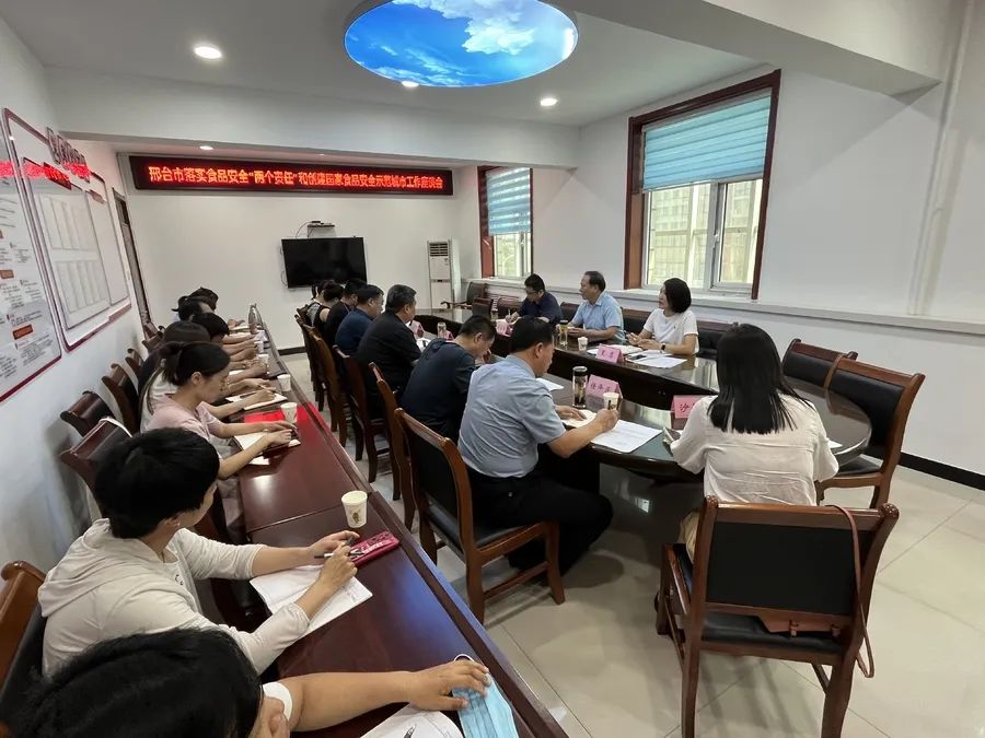 为进一步提升创建国家食品安全示范城市工作水平,8月15日,邢台市落实食品安全“两个责任”和创建国家食品安全示范城市座谈会在信都区市场监管局召开,此次会议总结工作成效、交流工作经验,合力推进落实“两个责任”和创建国家食品安全示范城市工作再上新台阶。市食药安办副主任、市市场监管局副局长乔福山主持会议,信都区市场监管局党组书记、局长颜红伟,襄都区、南和区、任泽区、沙河市等市区局主管副职及食品相关负责人参加会议。