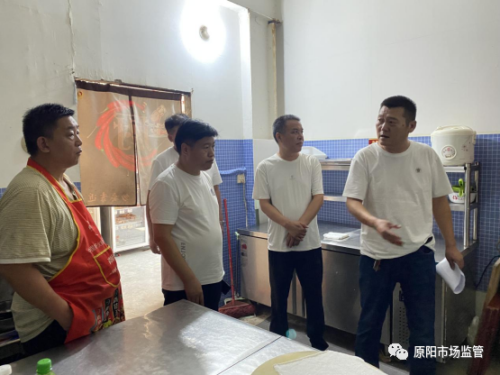 督导组从制度上墙、留样管理、台账建立健全、索证索票、环境卫生、人员健康证明等各个方面进行现场指导。
