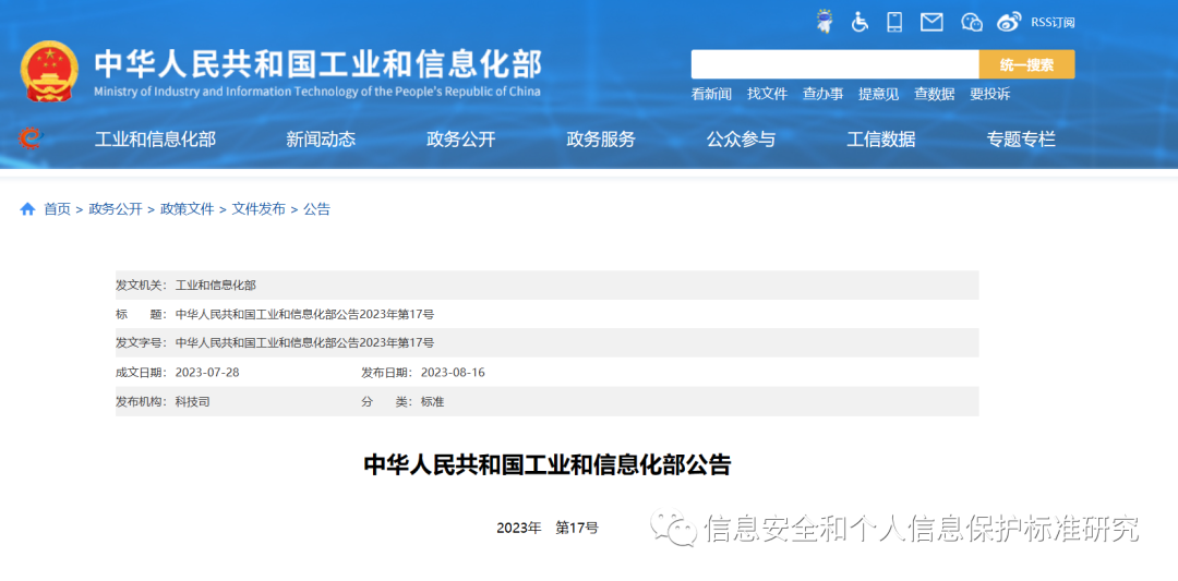 中华人民共和国工业和信息化部公告
