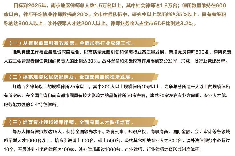 近日,南京司法行政在线公号发布了南京律师行业的近期数据,以及出台律师行业高质量发展三年行动计划(2023-2025年)。