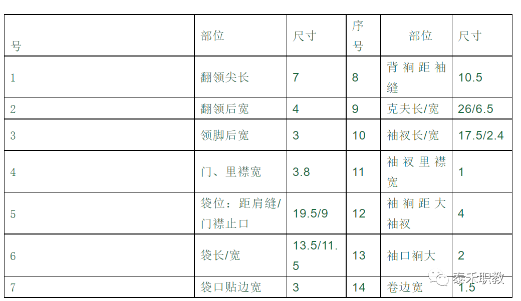 衬料分配:翻领衬一片,领座衬一片,克夫衬二片。