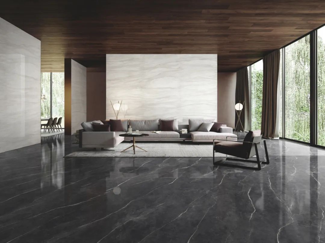 新濠超防滑大理石瓷砖旨在为年轻一派打造潮居,从第一感官出发,通过复刻奢石其姿态万千的自然肌理,在繁复的美学中凝练出生机与活力,把钢筋水泥变成包容性的舒适栖居,让家中一隅与美好共存。