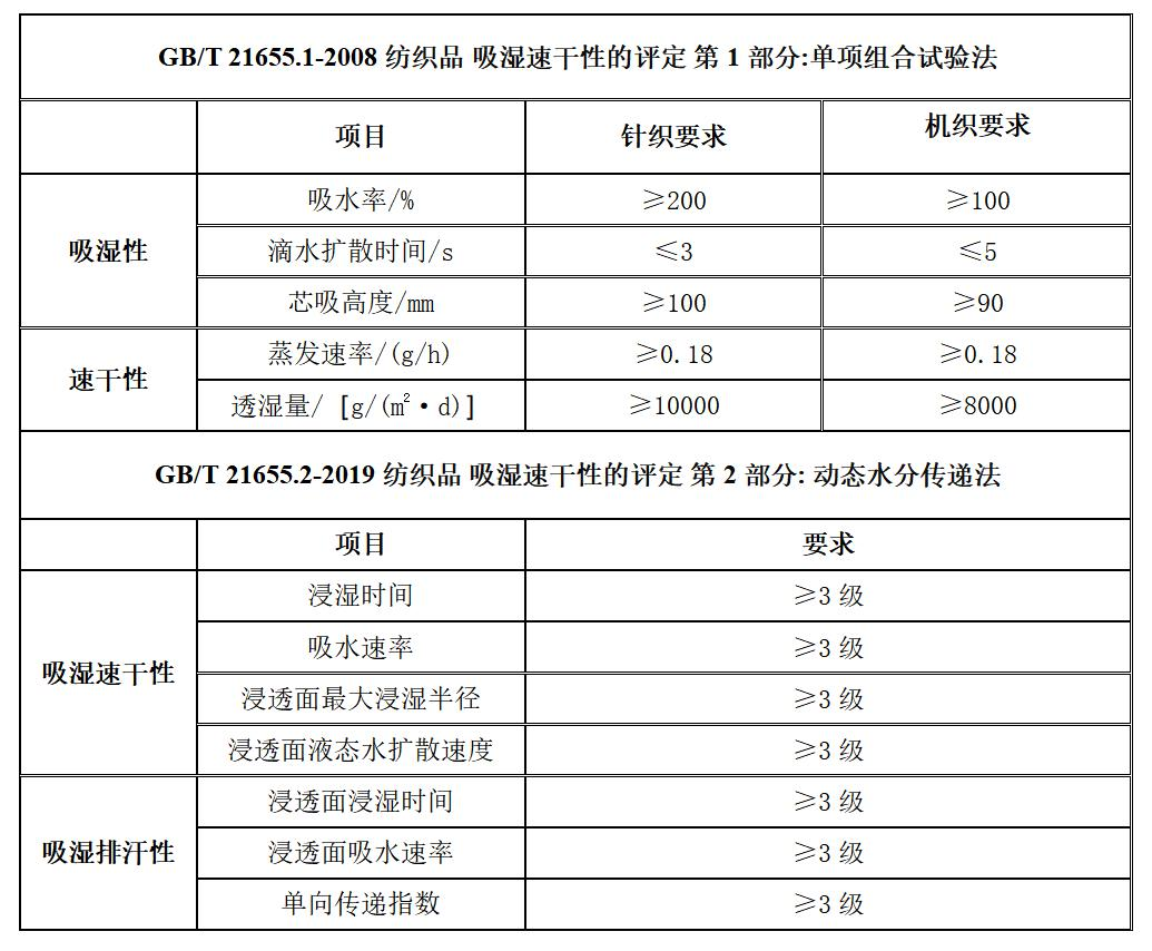 吸湿速干要求,如下: