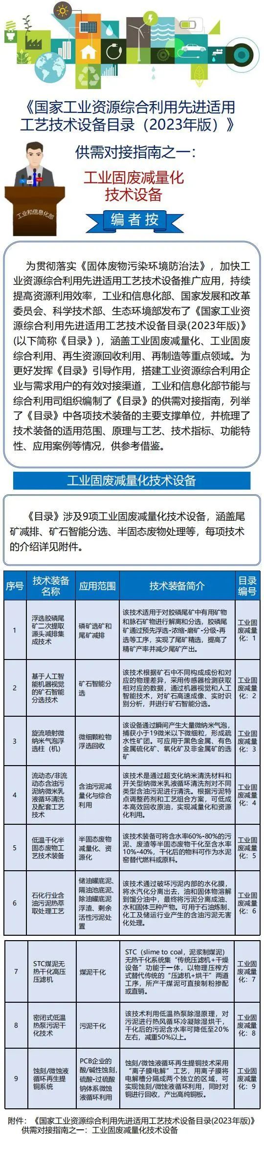 供需对接指南之一:工业固废减量化技术设备—国家工业资源综合利用先进适用工艺技术设备目录(2023年版)