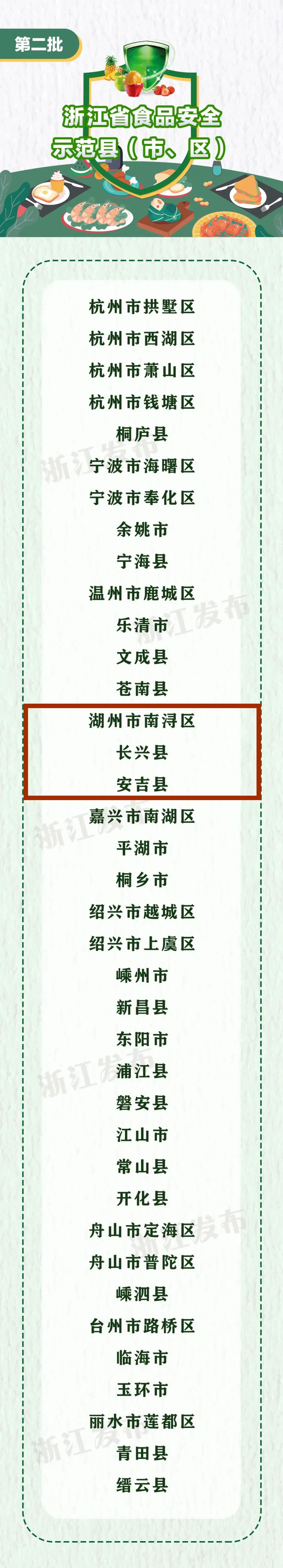 湖州3地上榜省第二批食品安全示范县(市、区)名单!
