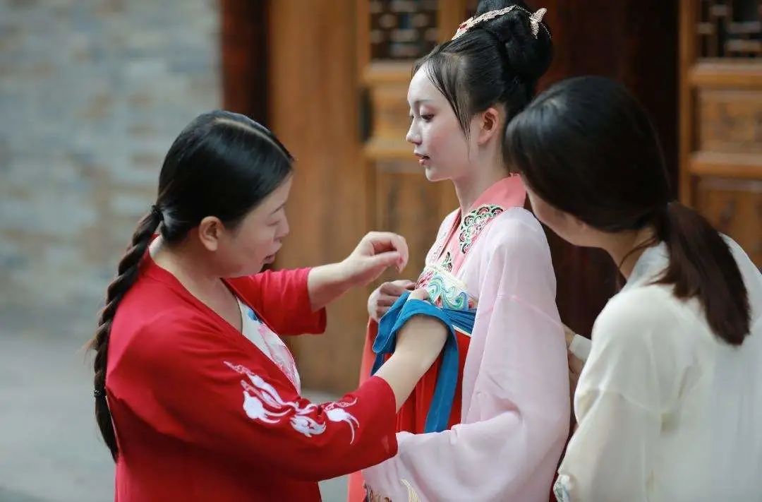 汉服包括衣裳、首服、发式、面饰、鞋履、配饰等共同组合的整体衣冠系统,浓缩了华夏文化的纺织、蜡染、夹缬[xié]、锦绣等杰出工艺和美学,传承了30多项中国非物质文化遗产,体现了锦绣中华、衣冠上国、礼仪之邦的美誉。