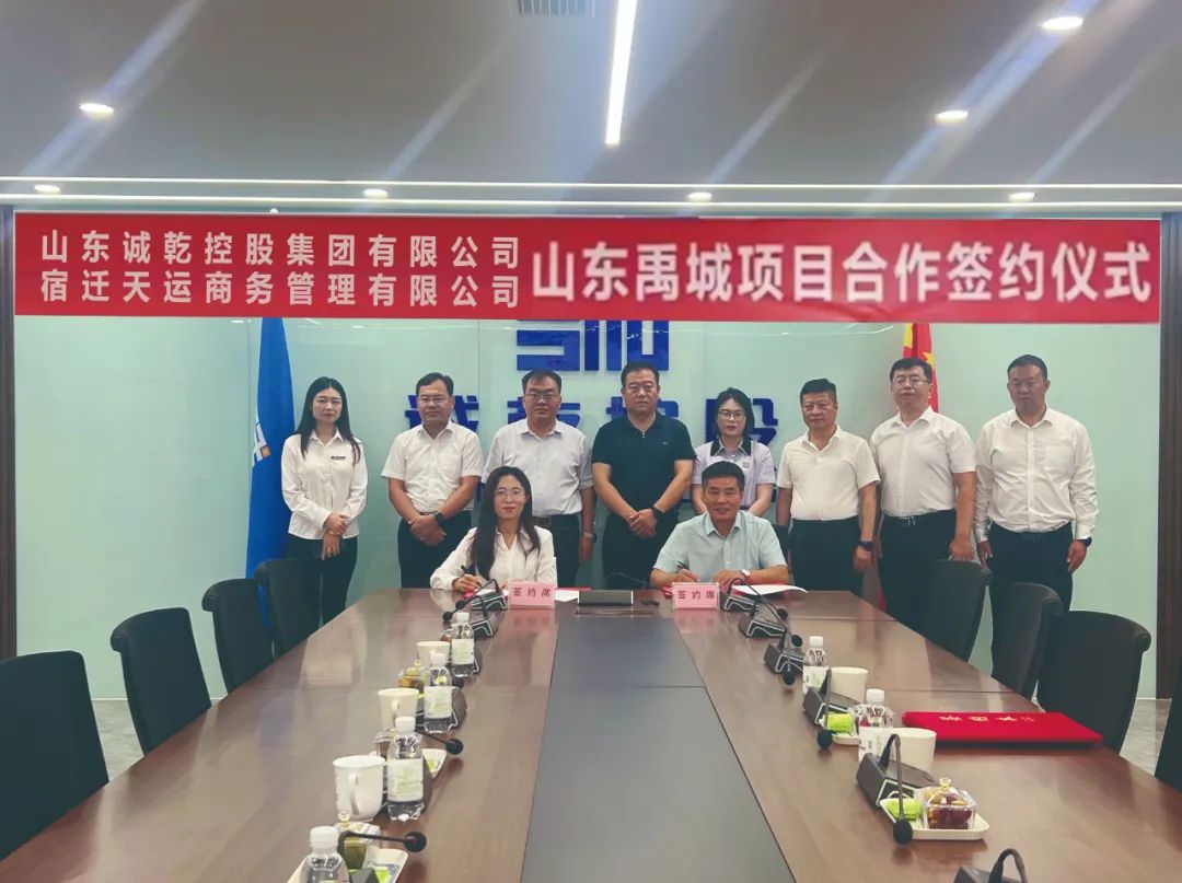 8月16日上午,禹城市政府、诚乾控股集团分别与江苏中领物流集团签署战略合作协议。江苏中领物流集团董事长张晶、事业部副总赵颜、运营部总监刘勇;禹城市财政局局长孙斌,禹城市交通运输局局长宋玉刚,房管中心主任高长征、诚乾控股集团董事长贾学山、执行总裁张倩等参加签约仪式。