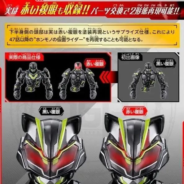在《假面骑士极狐》中,作为二骑景和变身的假面骑士太狸终于正式洗白了。随着剧情角色的转变,相关玩具周边也迅速推出了全新的配件。这次带来的是以武士刀太狸形态为主题,Revolve Change Figure PB07系列套装,其中一个重要亮点是额外提供了红色替换用复眼配件。