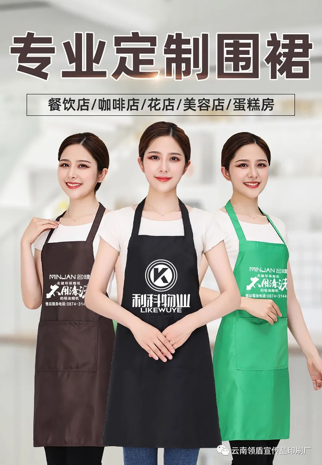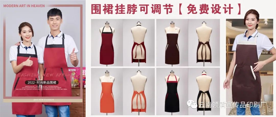 领盾生产加工围裙,小包边围裙/包边挎式/挎式围裙/双肩带围裙.....等,皆可定制加工不同样式的围腰,免费设计印logo图文,满意再生产!欢迎咨询了解更多。