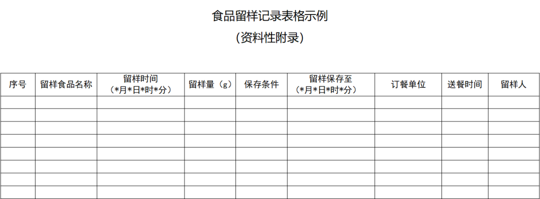 学校(含托幼机构)食堂、养老机构食堂、医疗机构食堂、中央厨房、集体用餐配送单位、建筑工地食堂(供餐人数超过100人)和餐饮服务提供者(集体聚餐人数超过100人或为重大活动供餐)要按照《餐饮服务食品安全操作规范》附录C填写食品留样记录
