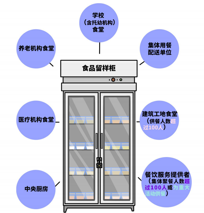 7.9.1学校(含托幼机构)食堂、养老机构食堂、医疗机构食堂、中央厨房、集体用餐配送单位、建筑工地食堂(供餐人数超过100人)和餐饮服务提供者(集体聚餐人数超过100人或为重大活动供餐),每餐次的食品成品应留样。其他餐饮服务提供者宜根据供餐对象、供餐人数、食品品种、食品安全控制能力和有关规定,进行食品成品留样。