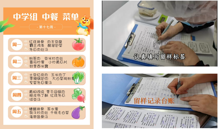 根据每餐菜品种类进行留样,要求菜谱、留样、标签、时间记录完全一致