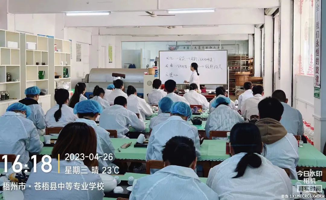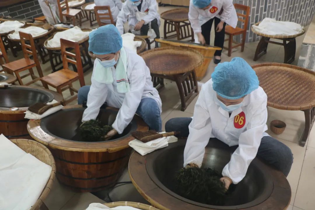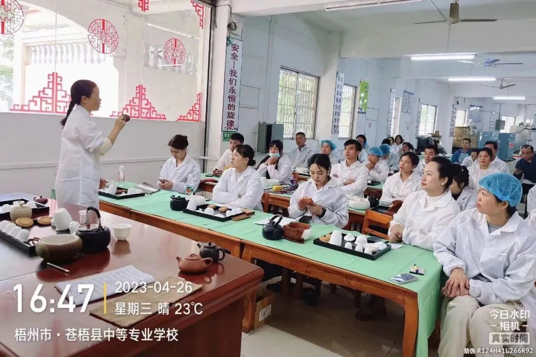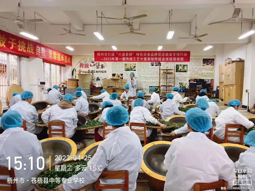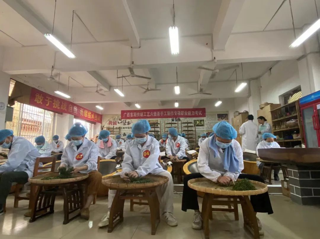 为贯彻落实习近平总书记关于做大做强六堡茶产业重要指示精神,进一步加大六堡茶加工技能人才培养力度,梧州市人社部门于4月25-27日举办了广西首期传统工艺六堡茶手工制作就业技能培训班,通过将国家《茶叶加工工》职业技能等级规范相关知识与自治区《传统工艺六堡茶手工制作专项能力》专项职业能力技能标准要求有机结合,采取“理论+实操”的培训方式,不仅讲授广西六堡茶概述、茶叶加工技术、六堡茶冲泡技艺及审评知识。还对六堡茶加工过程中的鲜叶摊晾、杀青、揉捻、堆闷、干燥等步骤进行现场实操教学,并由学员对各自制作的六堡茶进行交叉品鉴、审评。通过理论加实践的全流程教学有效提高了学员们对六堡茶加工、品饮品鉴水平。