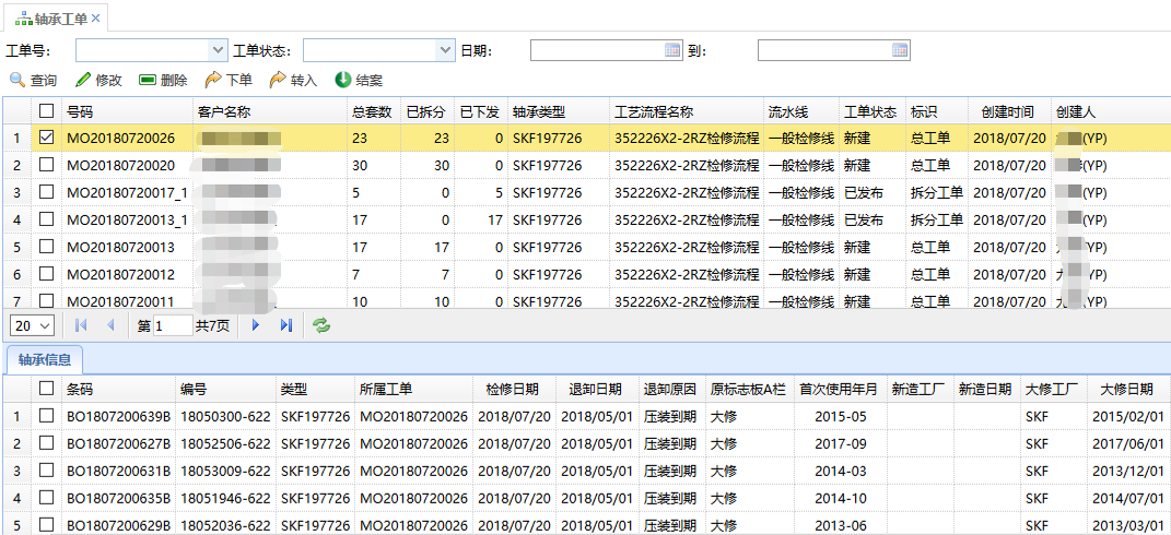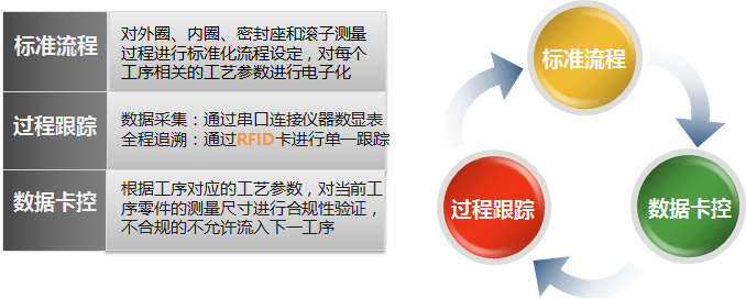 轴承造修生产执行系统在产前、产中和产后进行质量控制。