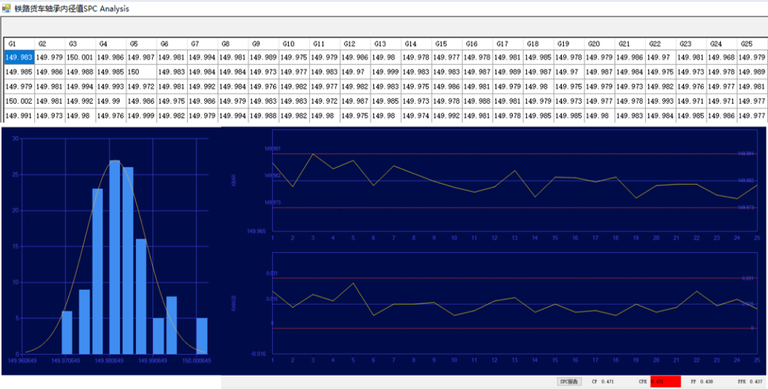 极差控制图:R控制图主要用于观察正态分布分散或变异情况的变化,R值大,说明产品与产品之间 的参数相差大。而X-R控制图则将二者联合运用,用于观察正态分布的变化。制程能力分析:通过CPK的值判定产品质量,科学的判定方法是CPK=1.33 为合格, CPK>= 1.67为良好, CPK>= 2.0以上为优良。