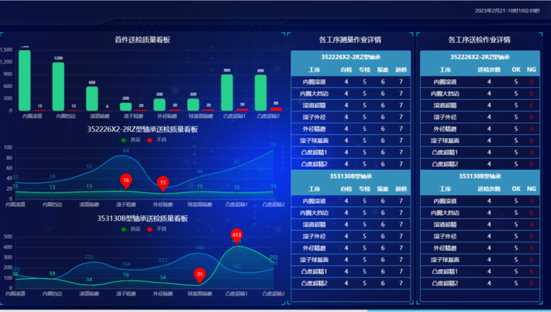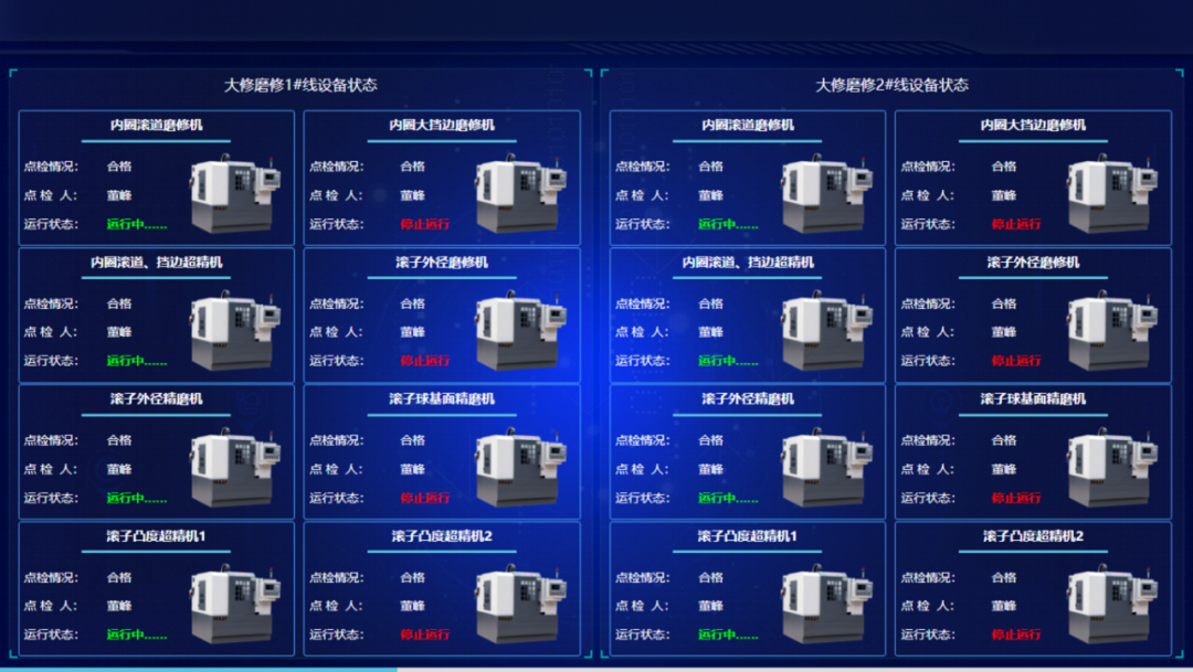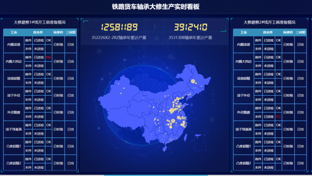 数智化工厂包含数字化计划、数字化进度、物料控制与流转、设备连线、数据采集、数字化产品、数字化工艺、数字化流程、数字化过程控制、数字化品控、智能装备、数字化看板等,打通企业信息孤岛形成全流程执行闭环,提升现场工作效率和产品质量,提高轴承修复率。