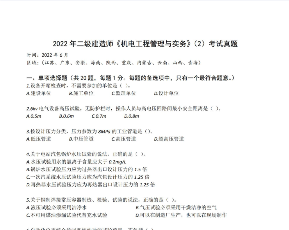 最近好多小伙伴私信有没有二建机电考试的真题,于是乎小编从各种渠道搜到了10-22年的机电考试真题,快快下载一起来复习吧~