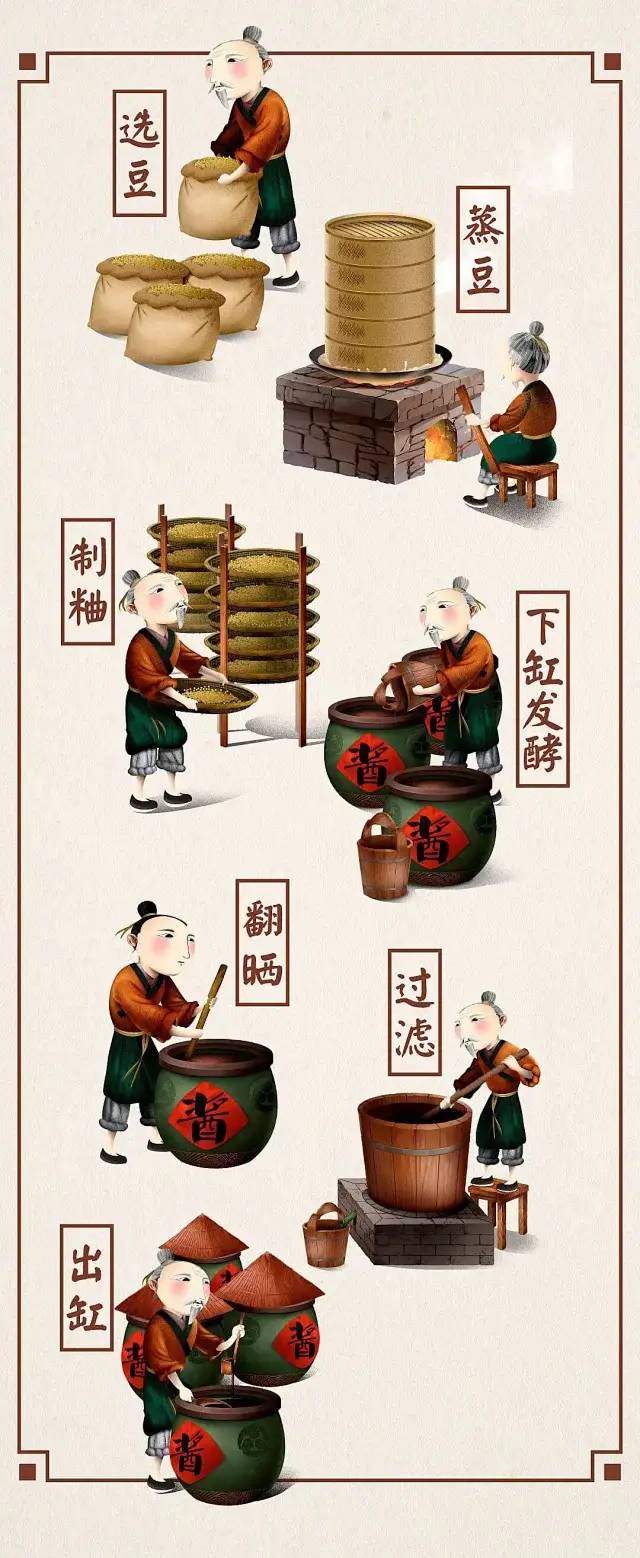 酱油的制作工艺,南北方之间略有不同。北方地区气温较低,更适合“固态发酵”制作酱油;而华南地区气温较高、湿度较高,更适合“稀态发酵”。 后者第一次抽出来的酱油被叫做“头抽油”,把原料拿回去二次发酵再抽出来的叫做“二抽油”,第三次发酵抽出的叫做“三抽油”。 2、生抽