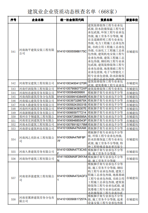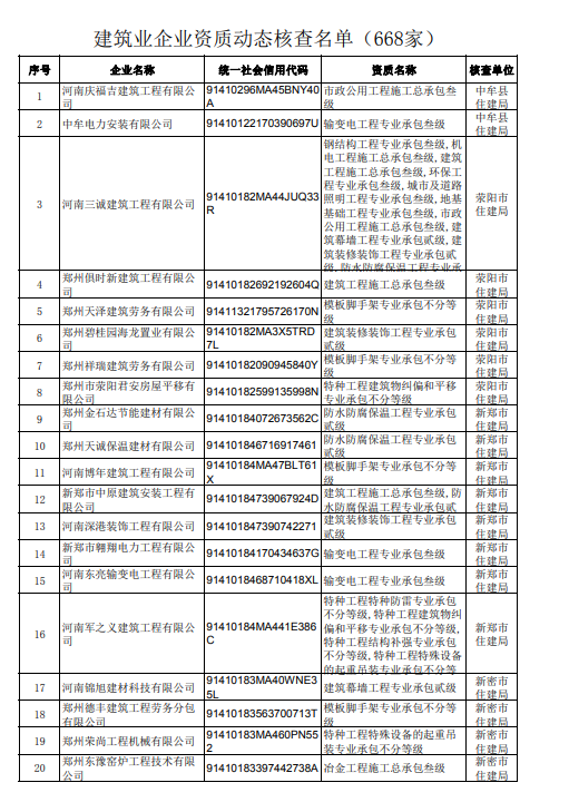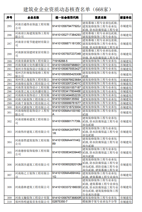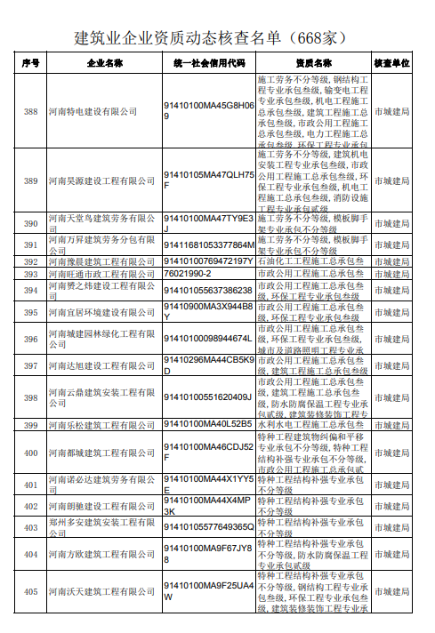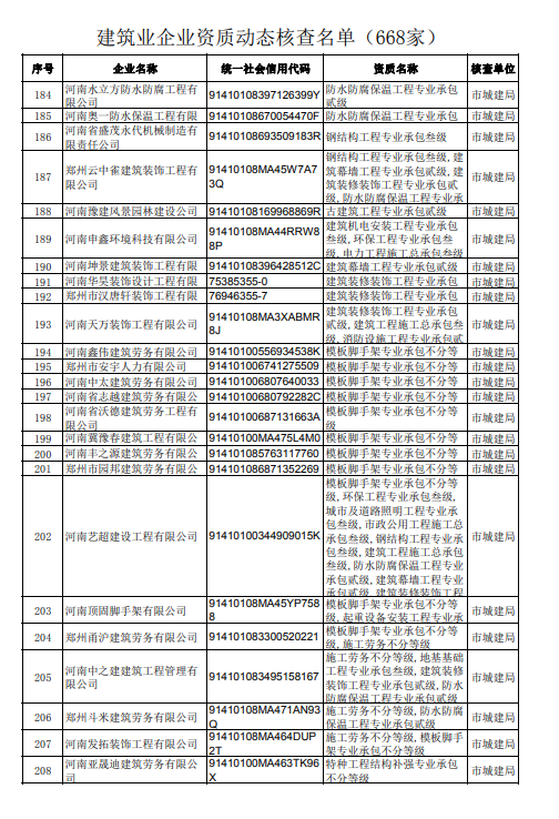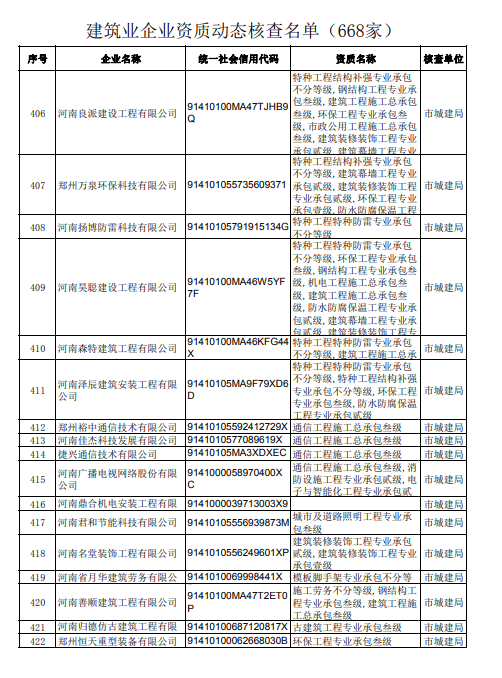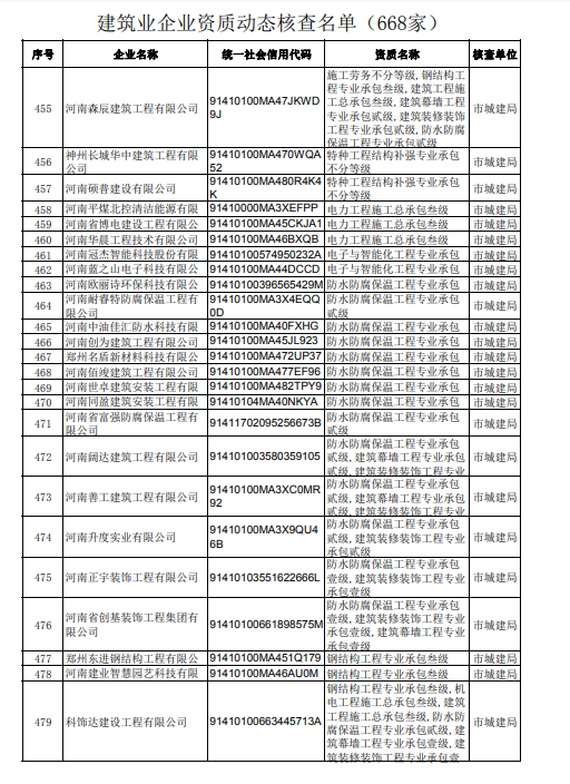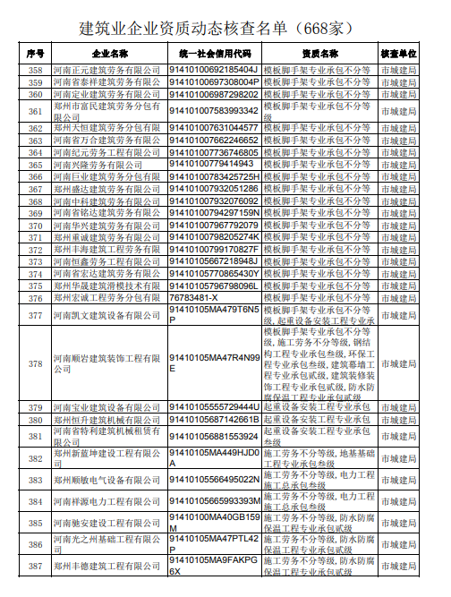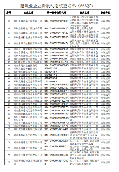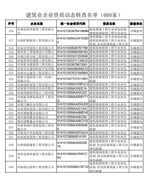 郑州市城乡建设局关于对建筑业企业进行资质动态核查的通知
