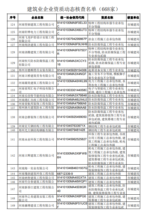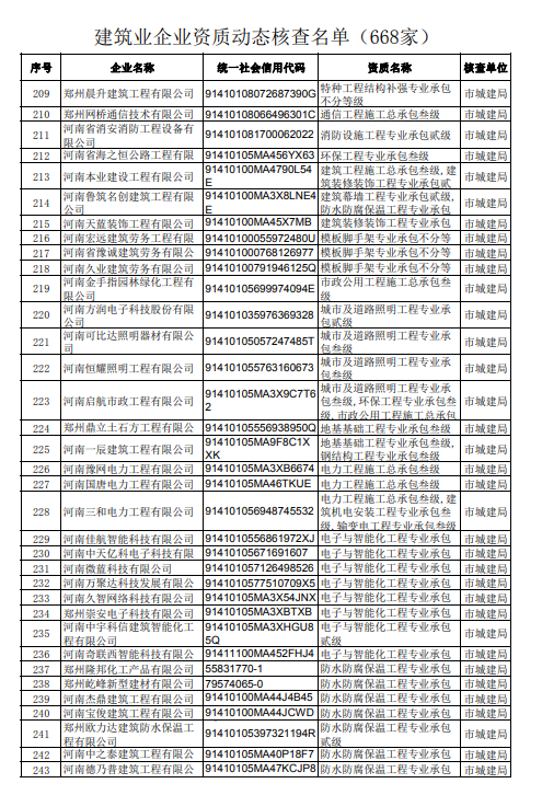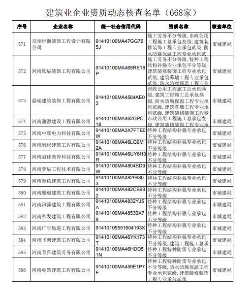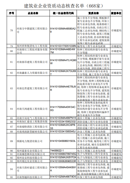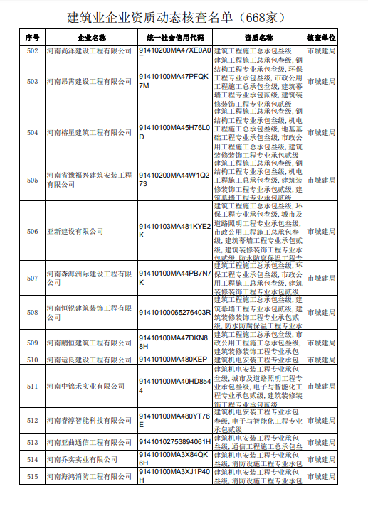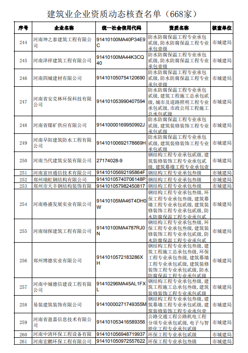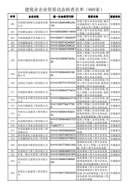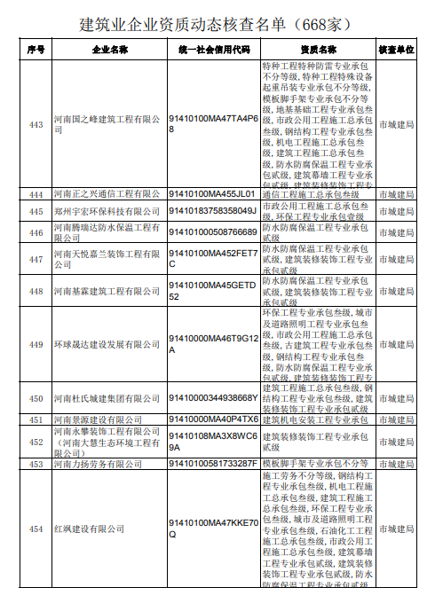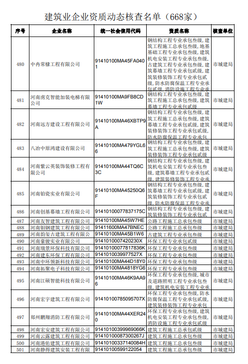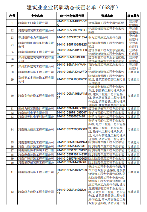 郑州市城乡建设局关于对建筑业企业进行资质动态核查的通知