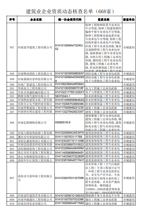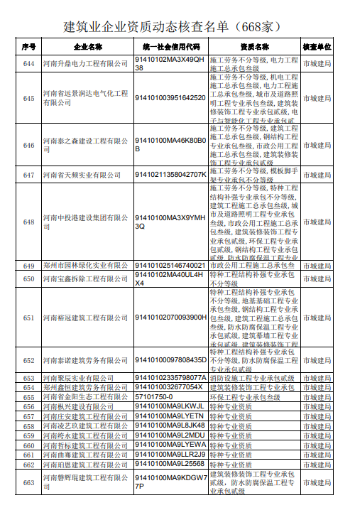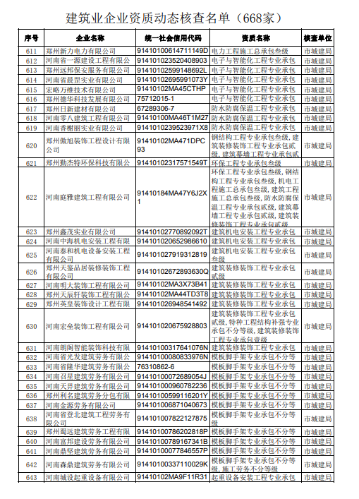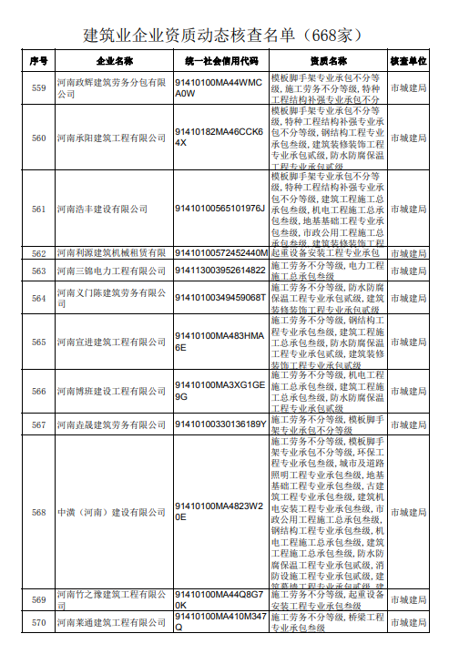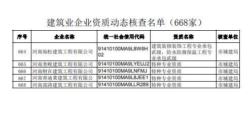为进一步规范建筑市场秩序,加强建筑业企业资质批后监管,经研究,决定对全市668家建筑业企业(名单见附件1)进行资质动态核查,现将有关事项通知如下: