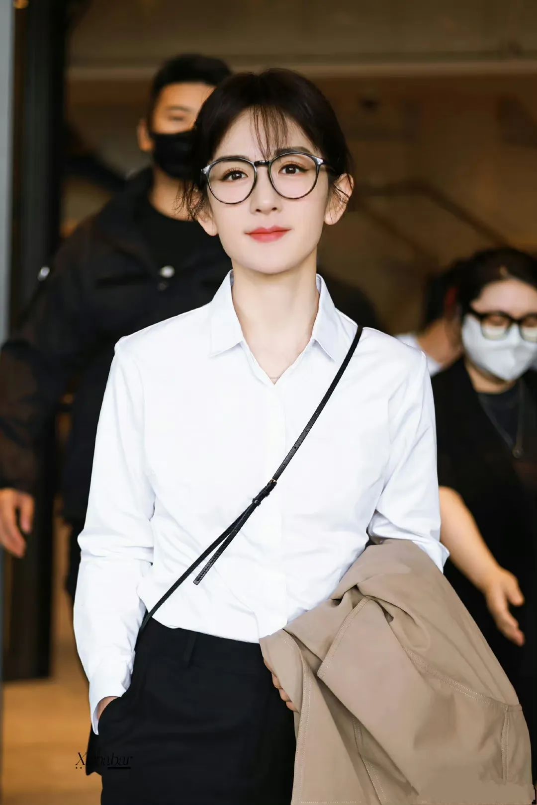穿搭小技巧:白衬衫+黑西裤+黑园眼镜框
